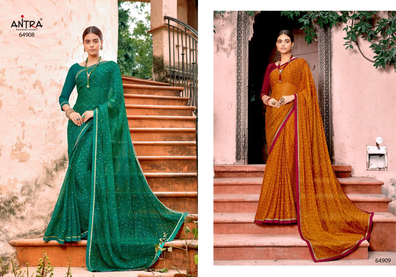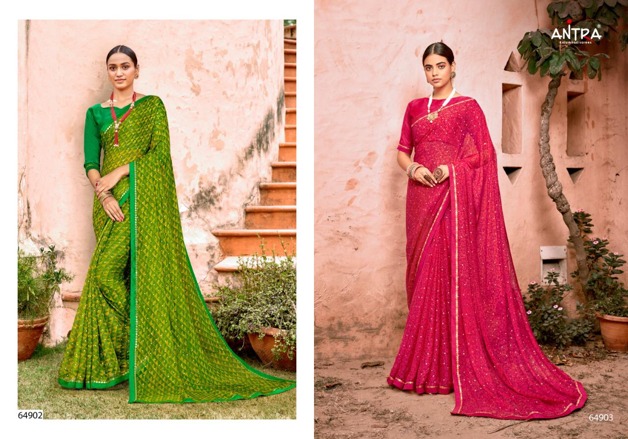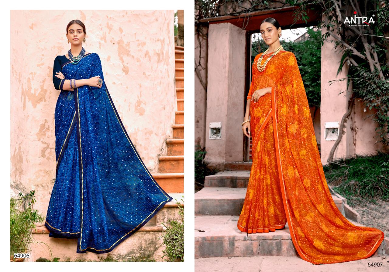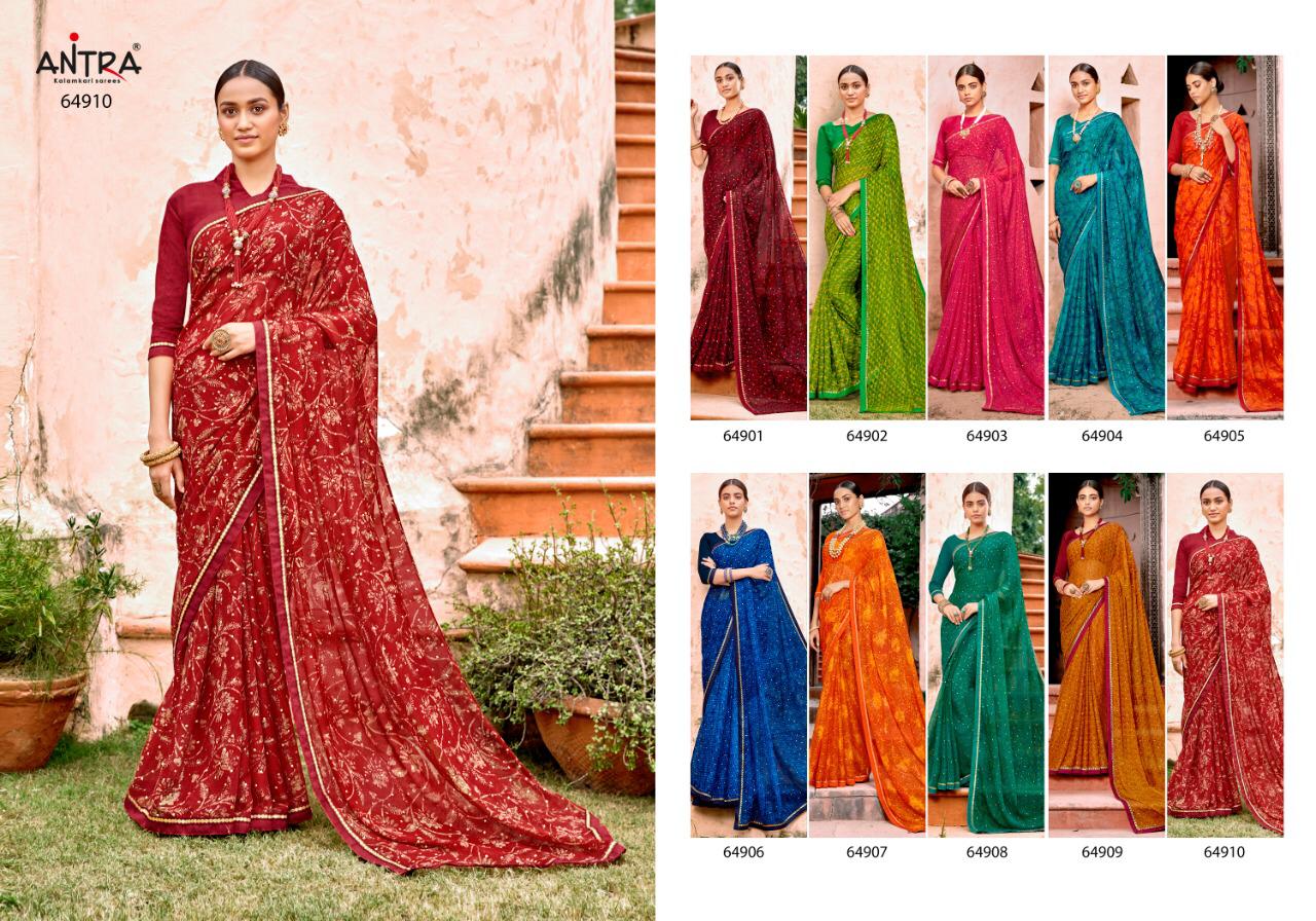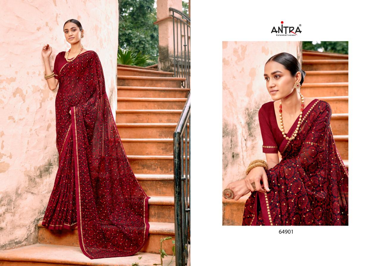 Antra Sarees Hasina Foil Printed Chiffon with less work Sarees Collection at Wholesale Rate.