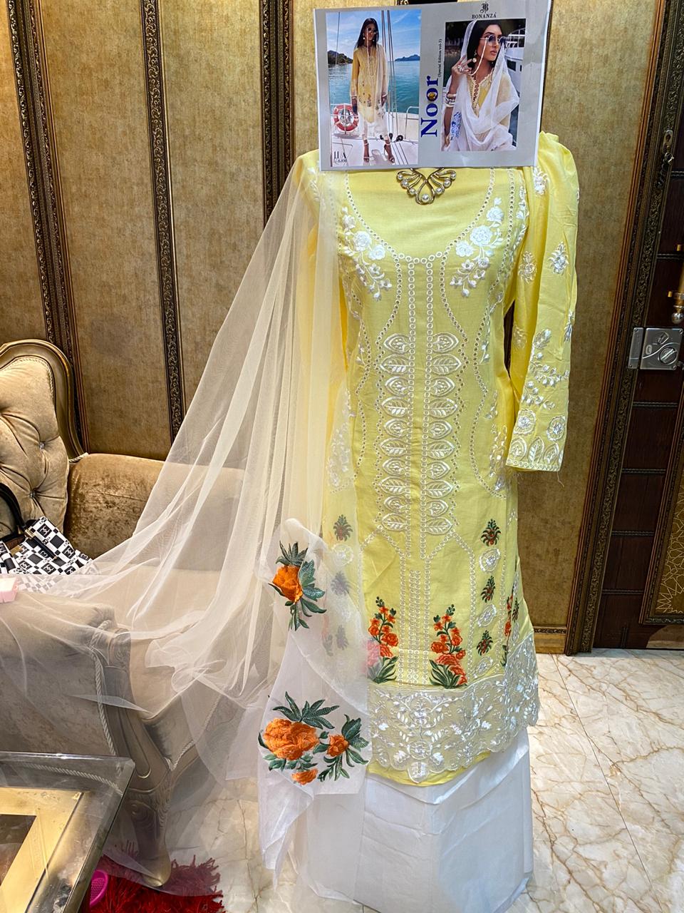 Bottom- semi lawn cotton with work Dupp- butterfly net with patch work Beautiful : 2 DESIGNS |