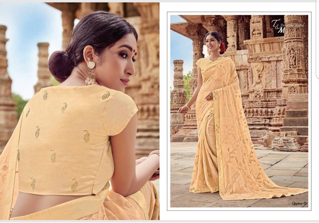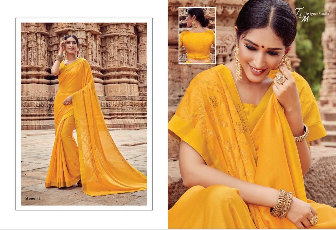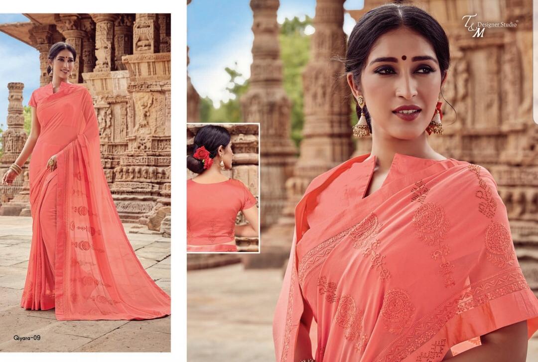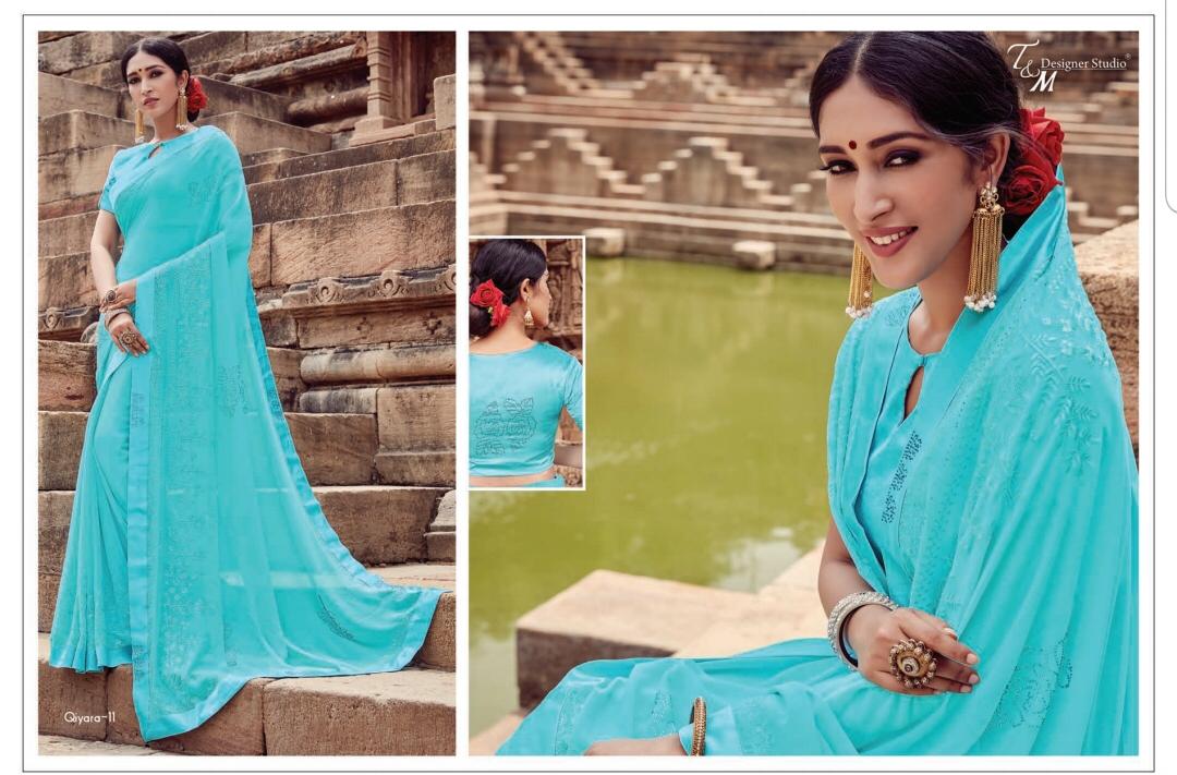 T&M Designer Studio Qiyara Georgette with Work Party Wear Sarees Collection at Wholesale Rate.