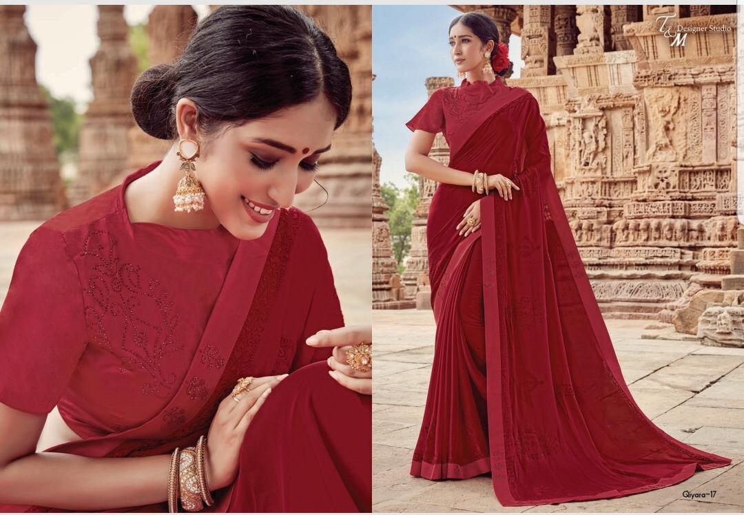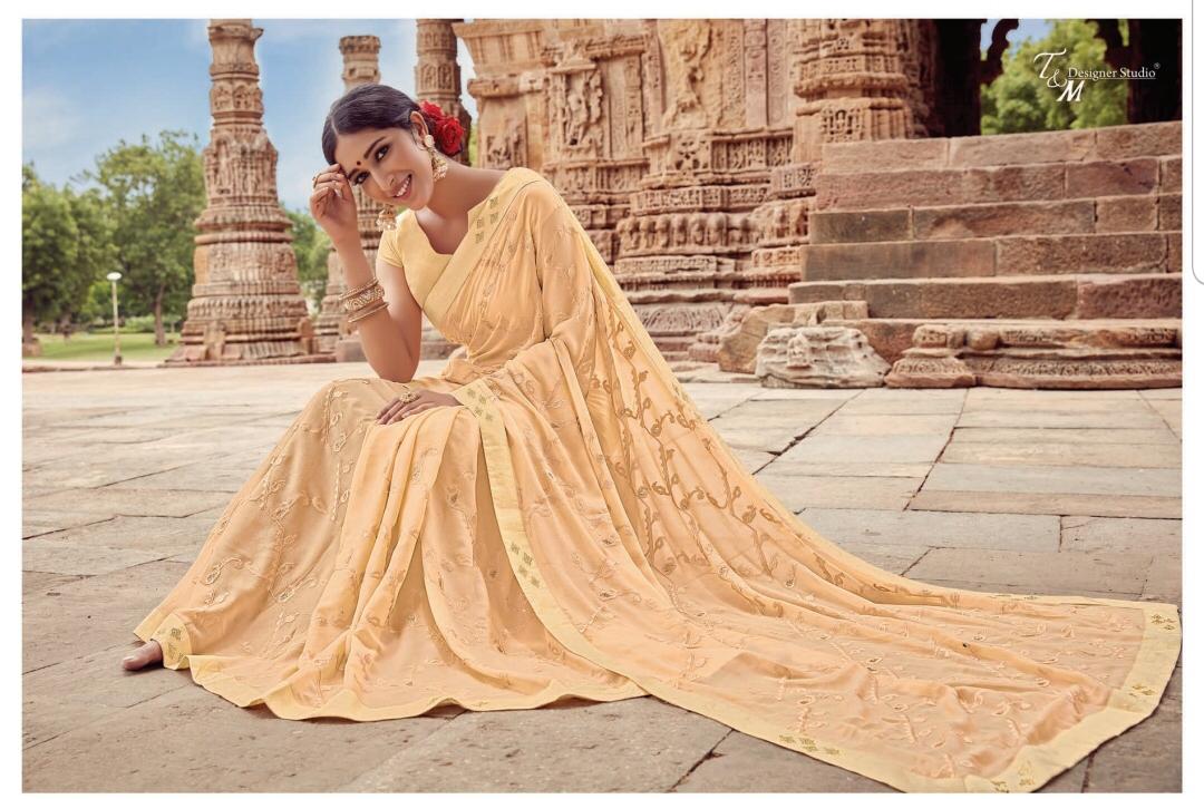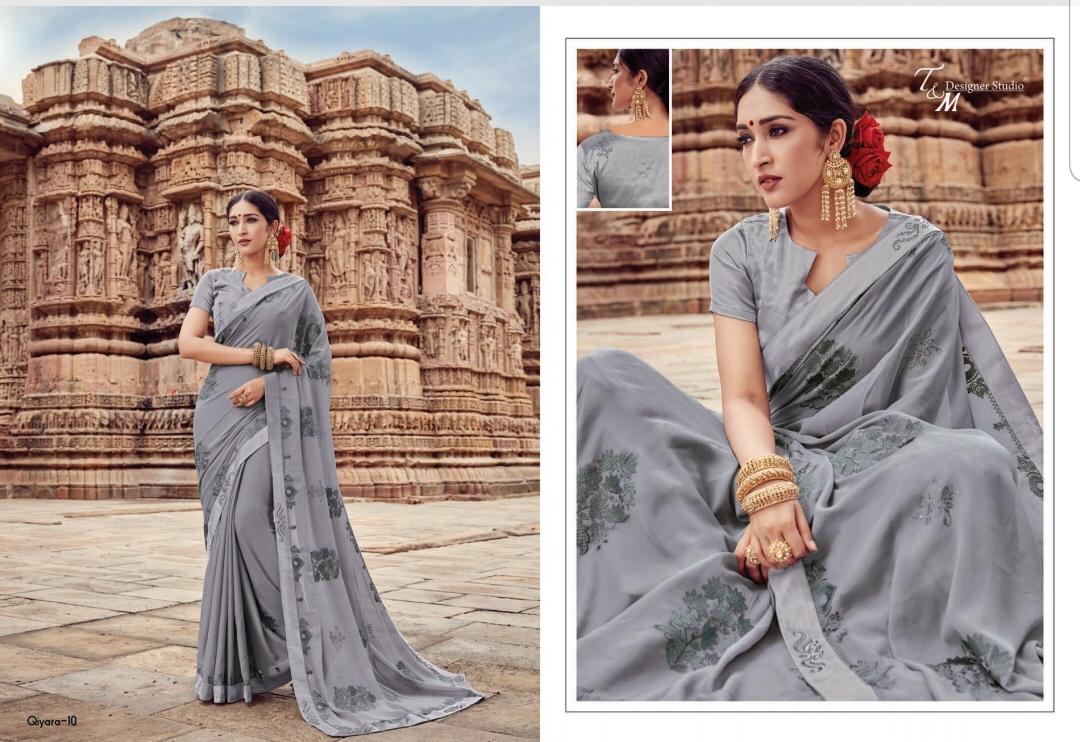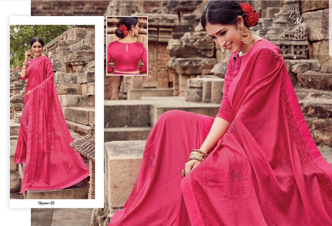 T&M Designer Studio Qiyara Georgette with Work Party Wear Sarees Collection at Wholesale Rate.